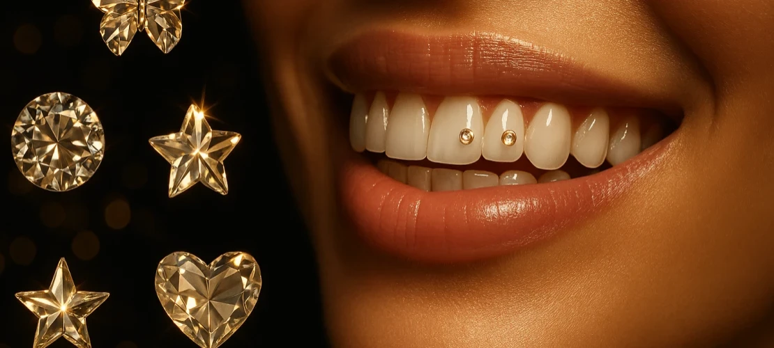 Rond, carré, goutte, cœur, étoile... Large gamme de tailles et couleurs pour bijoux dentaires